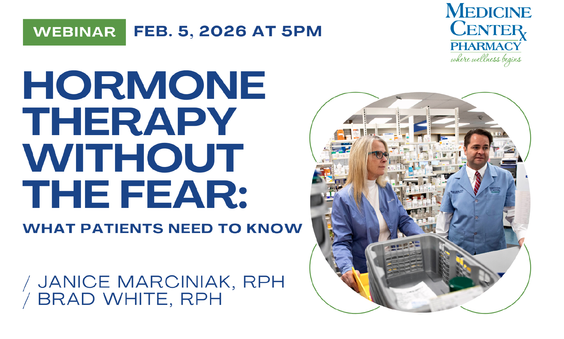 Medicine Center Pharmacy Pharmacist, Brad White, RPh will discuss all about the potential effects of natural therapies in maintaining good health. He regularly hosts webinars on health related topics and therapies and how they may impact one’s overall health positively.
